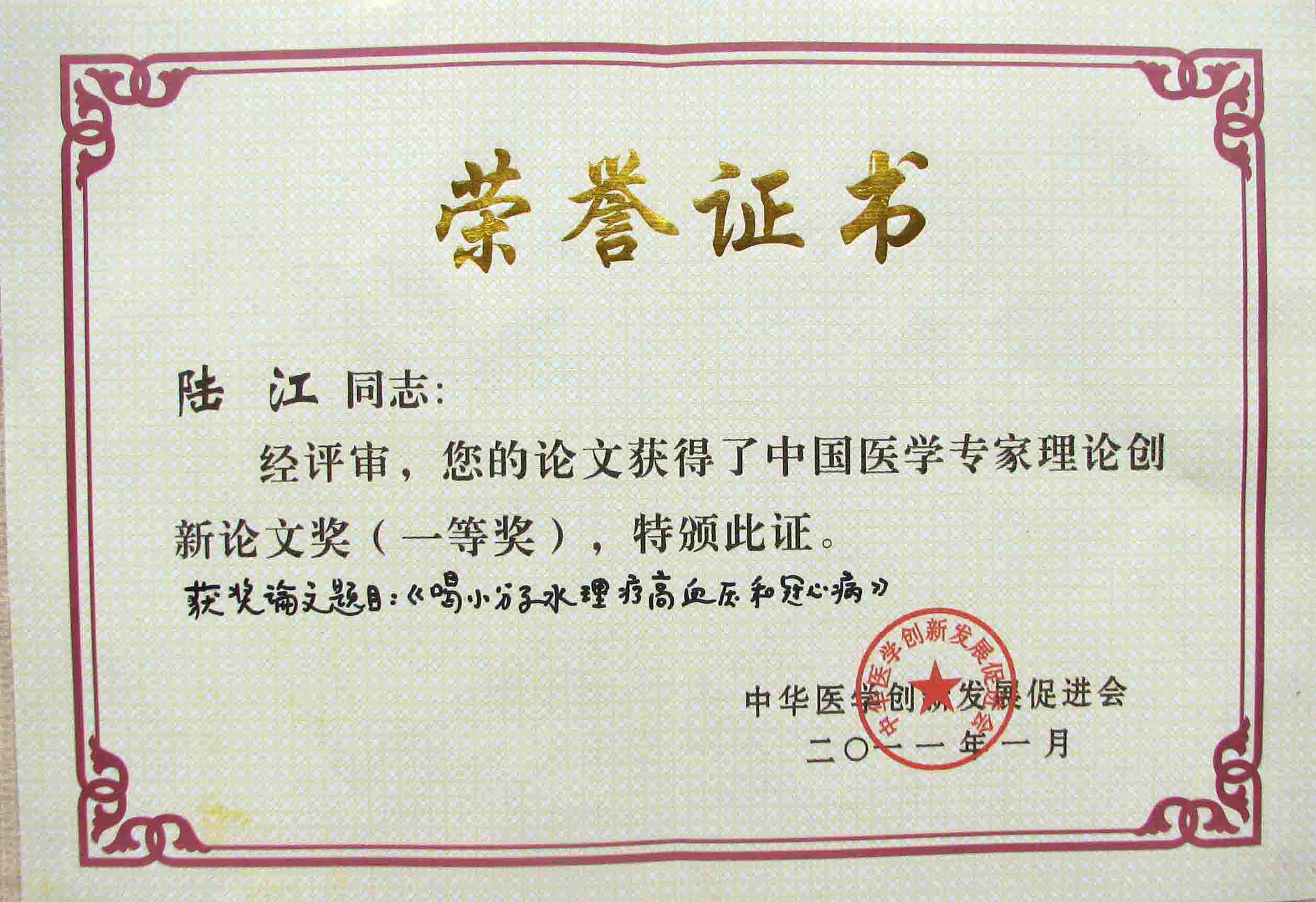 人類幾千年來患以上病癥需終生服藥,幾十年也不能治愈。可是我國南寧的高級工程師陸 江,于1990年想根治高血壓,研究發(fā)明了離子水瓶,處理出微小分子團水供飲用,經過醫院臨床試用和專家鑒定,1999年獲中國發(fā)明專利權,產品于2000年投放市場后一直跟蹤調查,據全國各地用戶反饋:祛除了高低血壓、糖尿病和冠心病,并使前列腺增生、咽喉炎、鼻竇炎、慢性氣管炎、支氣管炎、矽肺病、哮喘、慢性胃炎、腸炎、慢性膽囊炎、慢性腎炎、腎衰、膀胱炎、便秘、痔瘡、風濕性關節(jié)炎和濕疹皮炎及中風后遺癥等病癥不藥而愈。為什么喝微小水能治20多種病?陸 江從1991年德國科學家發(fā)現細胞膜水通道僅為2納米獲得啟發(fā),認為多種器官患病是因細胞脫水,不能正常代謝和分裂增殖,才使器官細胞減少致衰弱萎縮而形成細胞缺水性病癥。22年來的實踐有力地支持了“細胞脫水致病”這一重要論點,表明喝微小水可滿足細胞的生理需求,補水就能祛病,是生命科學新亮點。